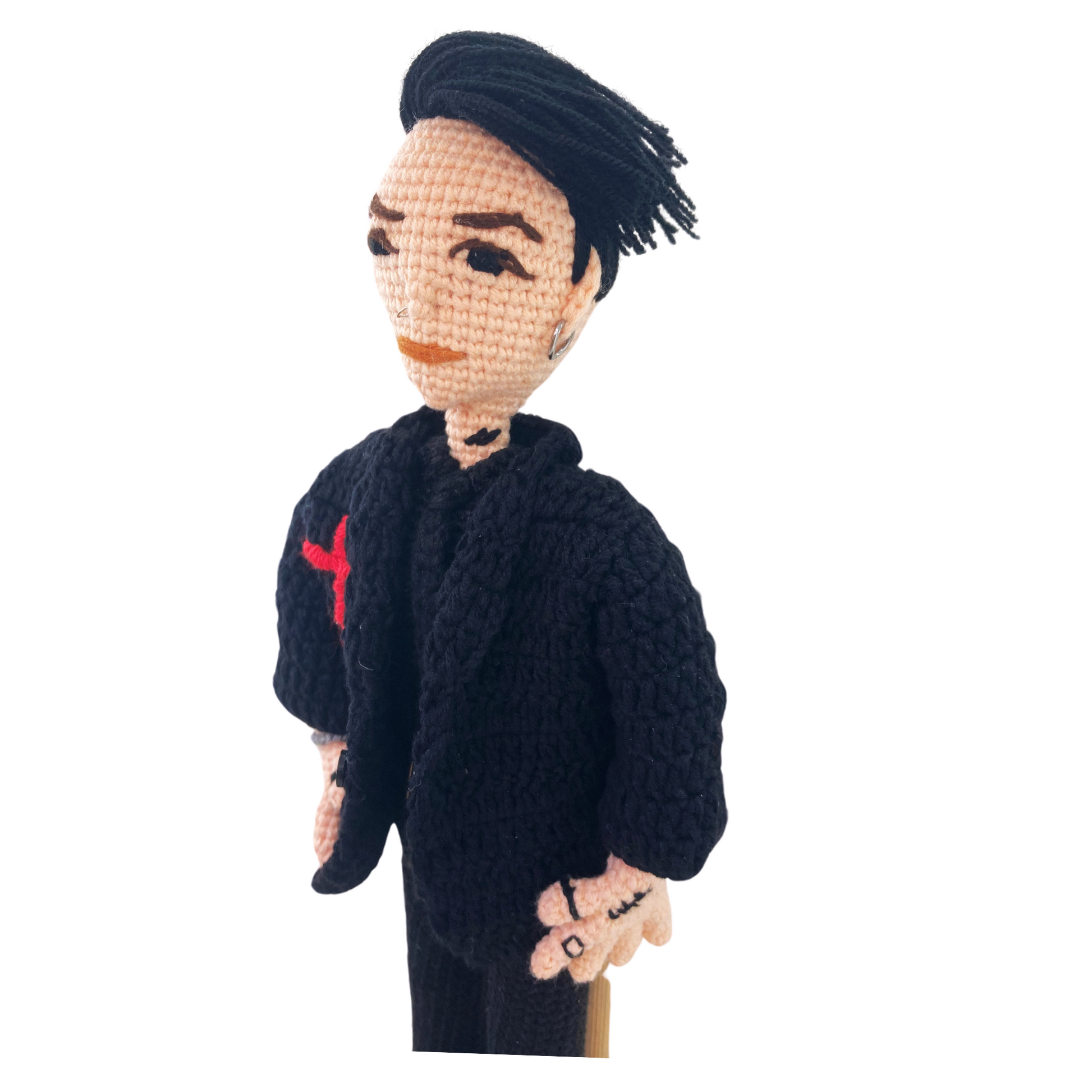 This is not a standard doll; it is a rock tribute, knitted with the attitude and precision that the Fallen Angels deserve.